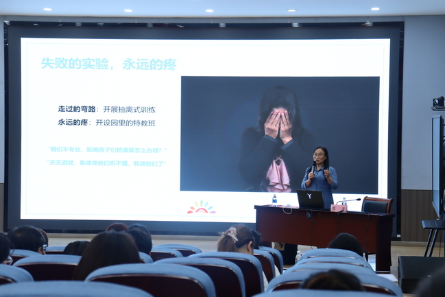 随后,beat365亚洲体育官方网站刘新学经理以“学前融合教育的理念、政策与发展趋势”为主题,宏观梳理了我国学前融合教育领域的政策演进和发展趋势,指出学前融合教育优质普惠发展,是新时代我国学前融合教育和特殊教育现代化发展的必然趋势,而强化支持保障机制、加强教师队伍建设,是推进学前融合教育优质普惠发展的重要任务和主要措施。张丽莉副经理在孤独症儿童学前融合教育主题讲座中,系统性的从环境创设,课程调整,专业支持模式三个方面为老师们提供了提升孤独症儿童学前融合教育质量的策略。